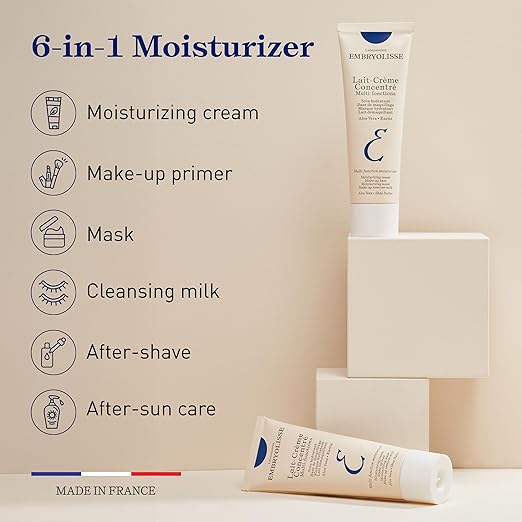 Embryolisse Lait Crème Fluide Multi-function Moisturizer is a versatile and lightweight lotion that provides deep hydration and nourishment for all skin types. This fluid cream is a multi-purpose skincare product that can be used as a daily moisturizer, makeup primer, body lotion, or after-sun care. Enriched with essential fatty acids and vitamins, it restores the skin’s natural barrier, leaving it soft, smooth, and radiant. Suitable for sensitive skin, it absorbs quickly without leaving a greasy residue.
